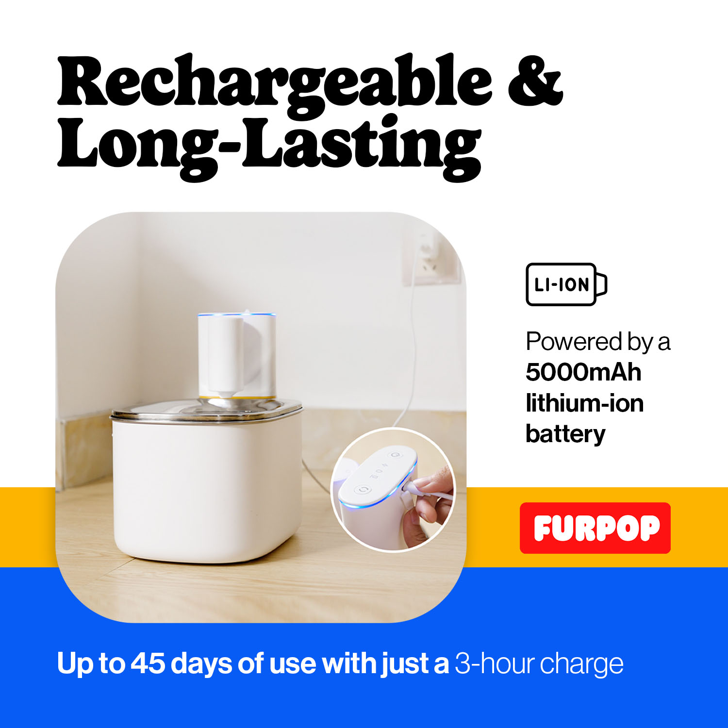 Powered by a 5000mAh rechargeable lithium battery or Type-C cable, the SmartFlow runs for over 72 hours of continuous use, with up to 300 days of standby time when not in use. It fully charges in under 5 hours, keeping your pet’s hydration routine effortless and uninterrupted.