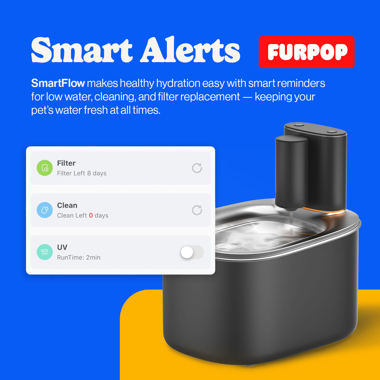 Keep your pet hydrated with confidence using the FurPop SmartFlow Smart Pet Water Fountain, designed with intelligent features and eco-friendly materials to support your pet’s health around the clock.